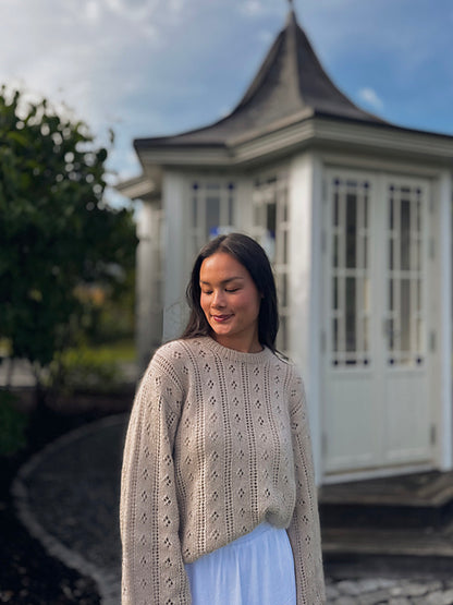 Enjoy the graceful rhythm of lacework paired with refined details like a folded neckline and Italian tubular bind-off. The result is a garment that feels every bit as elegant to wear as it was satisfying to create.
